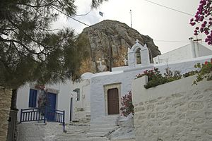 V okolí Kastra jsou prolézačky se schodišti, jak už to bývá na Kykladách zvykem. Většina viditelných zdí kláštera pochází až z 18. století, ale najdeme tu i mnohem starší kostely. Můžeme vystoupat až ke kostelu na hradě. Vypadá nepřístupně, ale vede tam cesta. Koho baví chodit po schodech a vyhlížet, ten si tady užije.