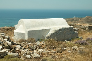 Chodníček od silnice nás nejprve dovede k plácku, jehož dominantou je menší kostel postavený z velkých antických kamenů. Je to Panagia sto Dokari. Dobu stavby neznáme, jisté je jenom to, co je názorně vidět: Je to křesťanská stavba s jednou apsidou, převážně nebo dokonce výhradně z antického materiálu. I ten může být různého stáří, jasně datovatelný je zazděný kousek víka římského sarkofágu, jehož větší část leží vedle vchodu do kostela. Interiér je už tuctovější, i když milý.